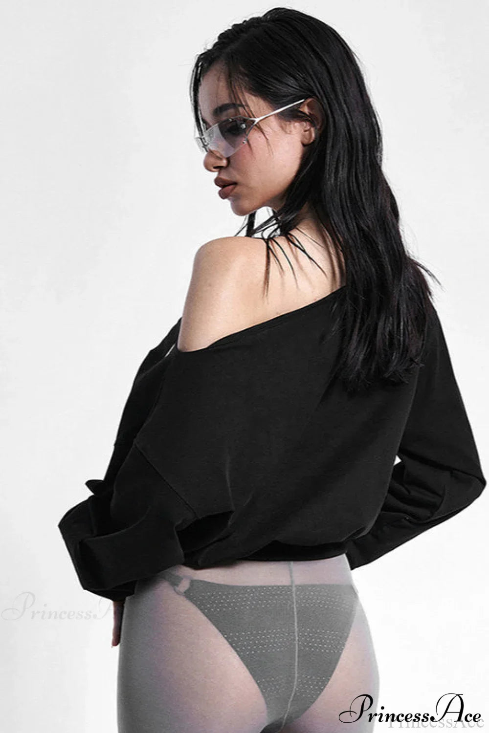 Solid Color Asymmetric Shoulder Cutout Long Sleeve Blouse