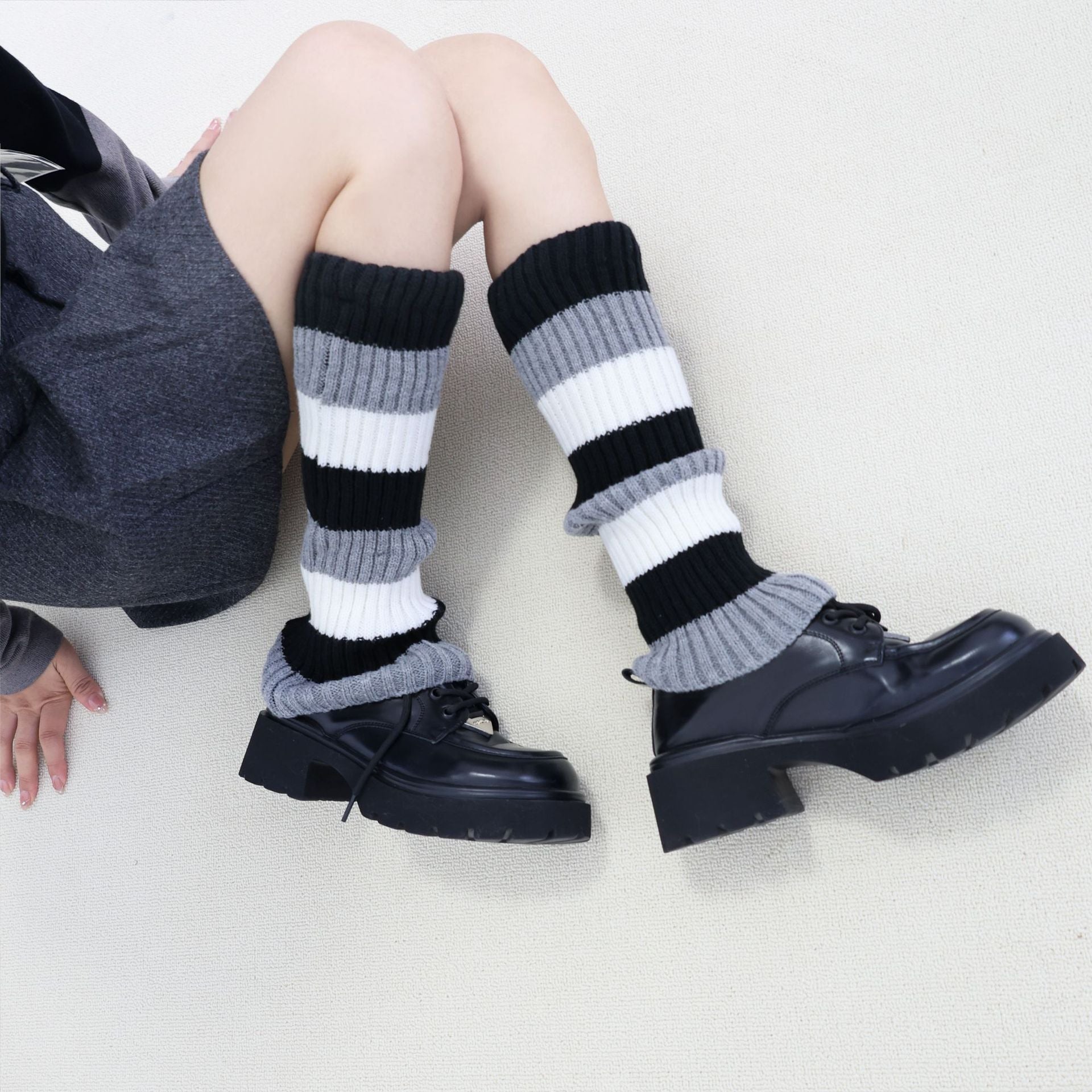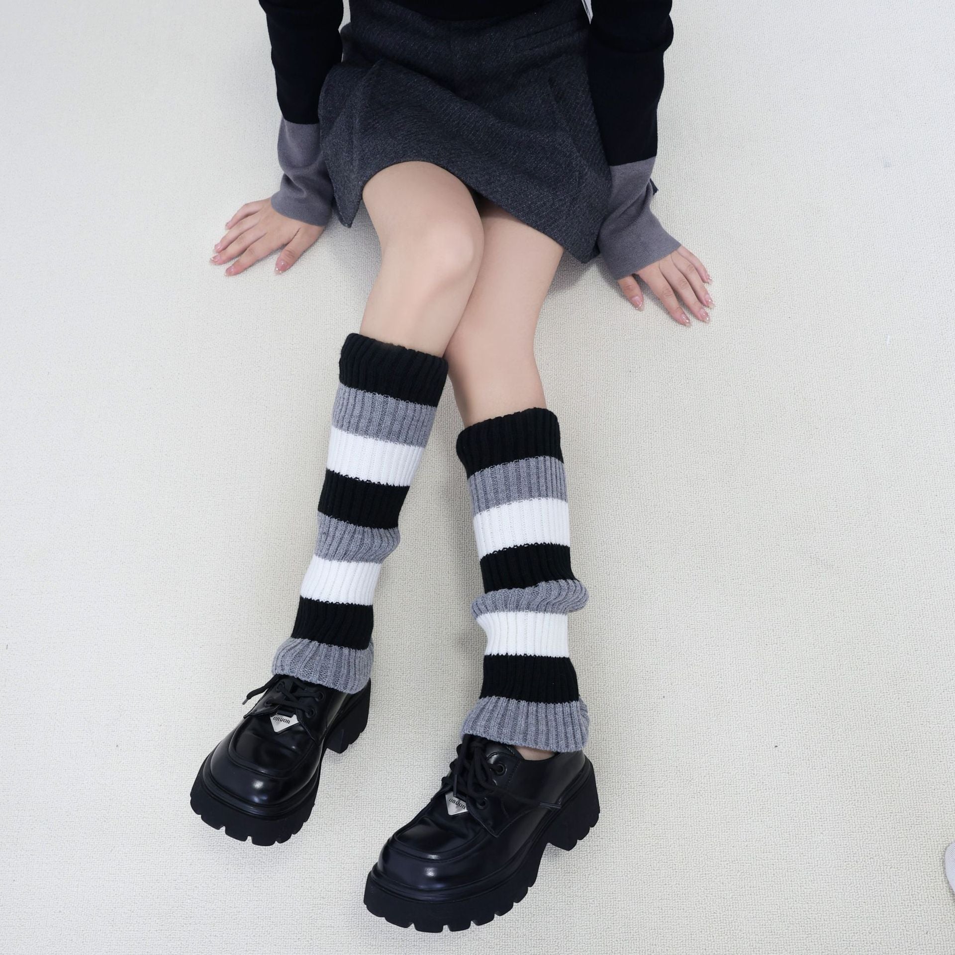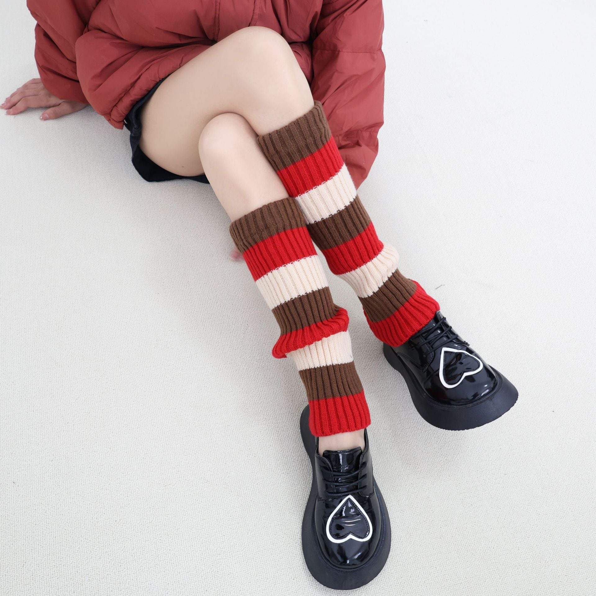 Knit Striped Color Block Slouchy Red Christmas Leg Warmers