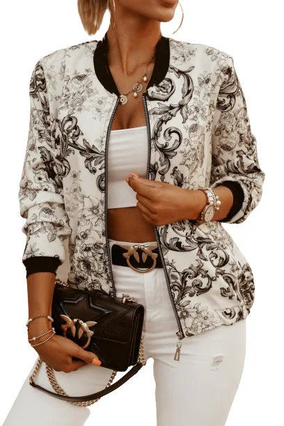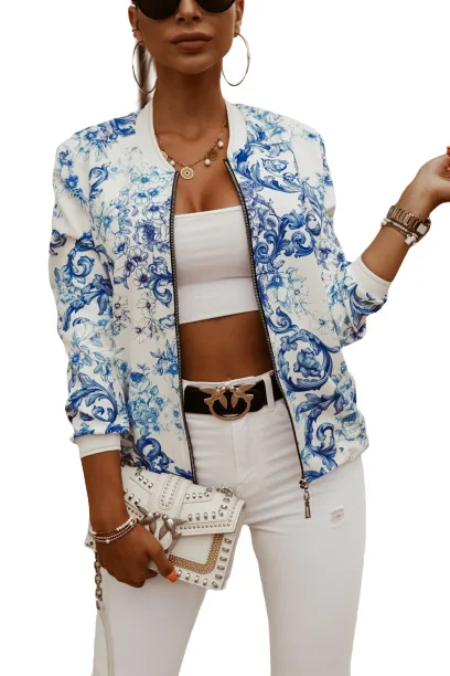 Flower Print Long Sleeve Coats