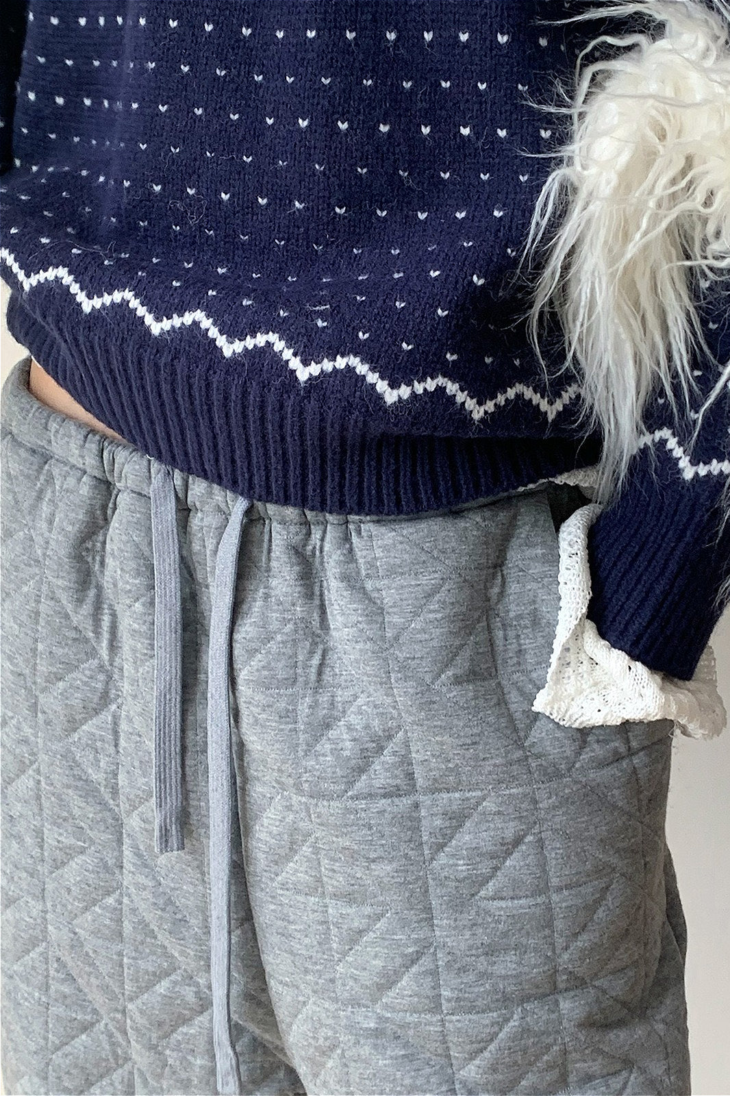 Solid Diamond Quilted Thickened Drawstring Thermal Pants