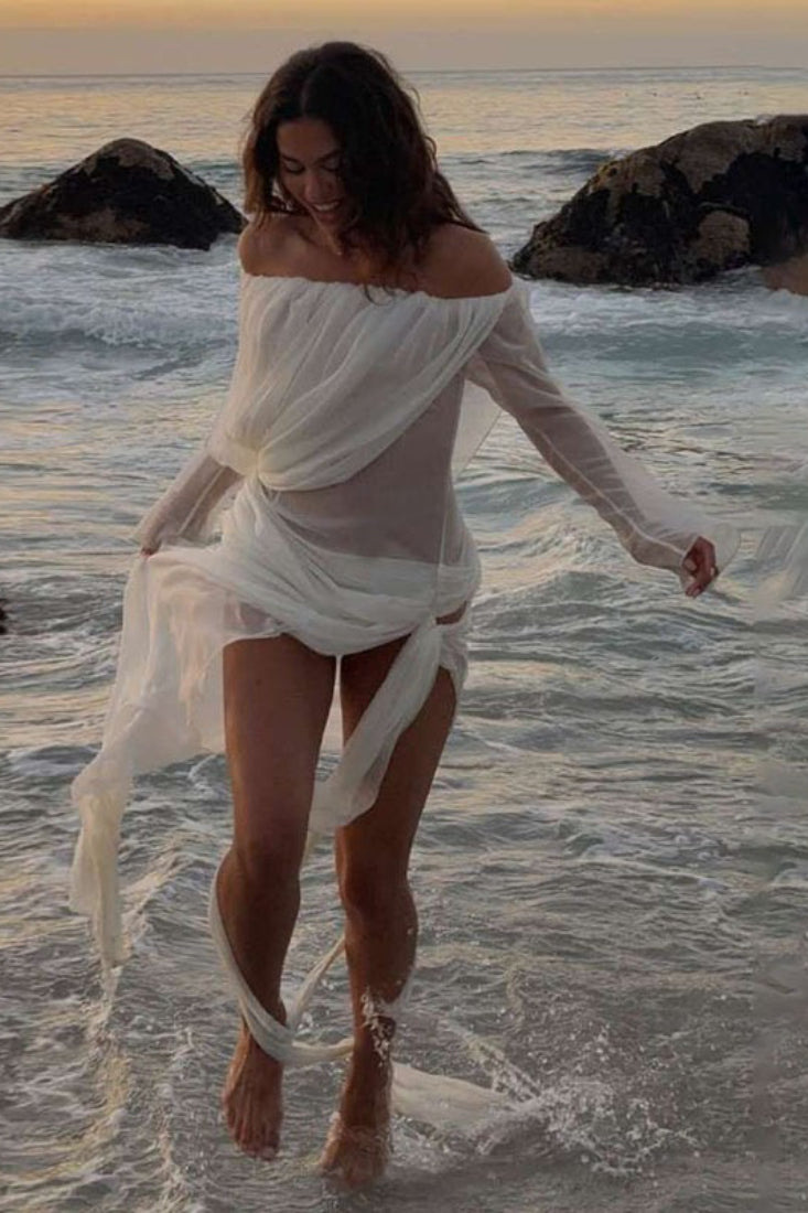 Solid Mesh Sheer Off Shoulder Ruched Elegant Maxi Dress