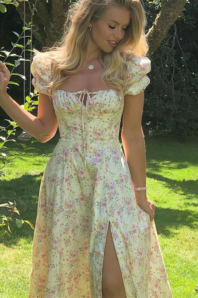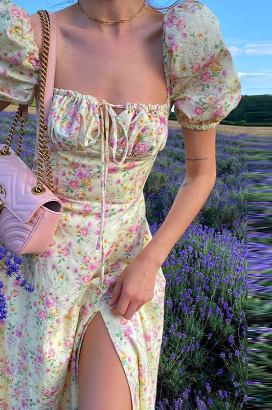 Slim High Waist Floral Dress