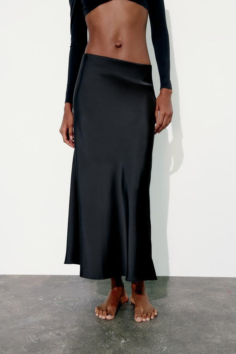 Slim High Waist Satin Texture Straight Midi Skirt