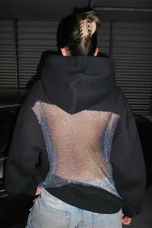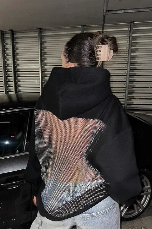 Mesh Cutout Hooded Long Sleeve Casual Sporty Hoodie