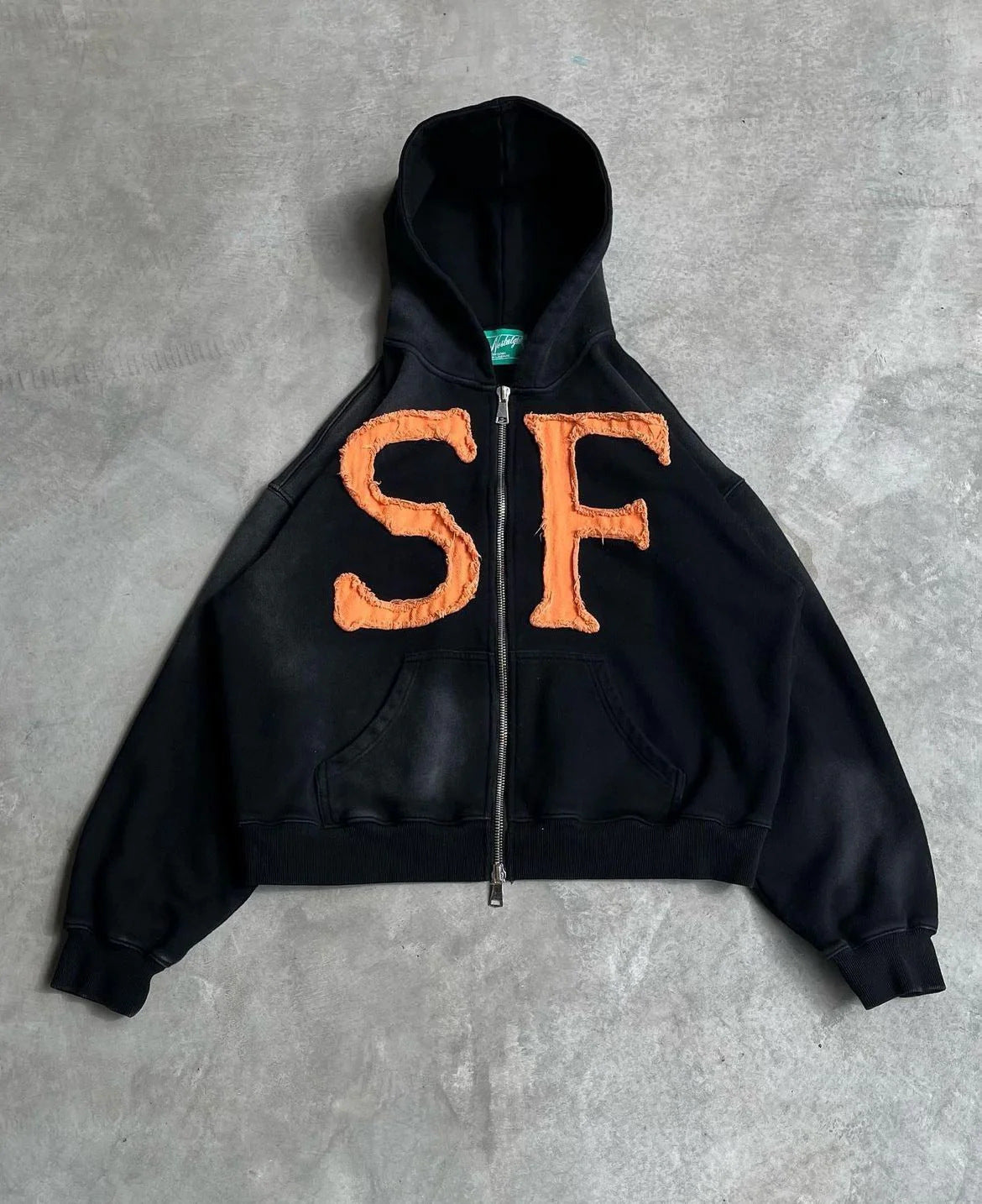 Trendy Retro Embroidered Oversized Comfortable Hoodie