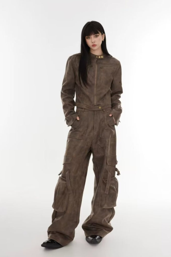 Cropped Tie-Dye Stand Collar Jacket