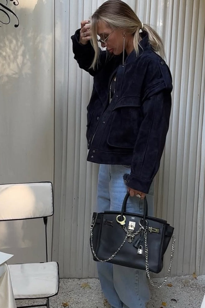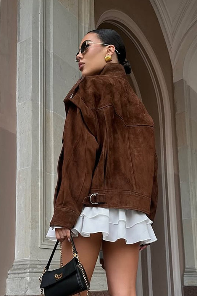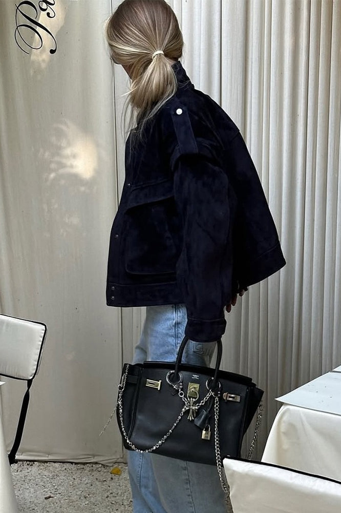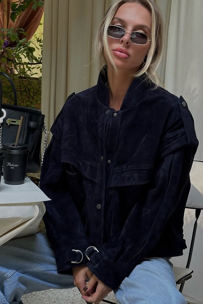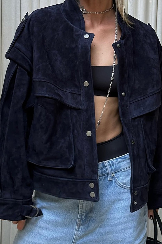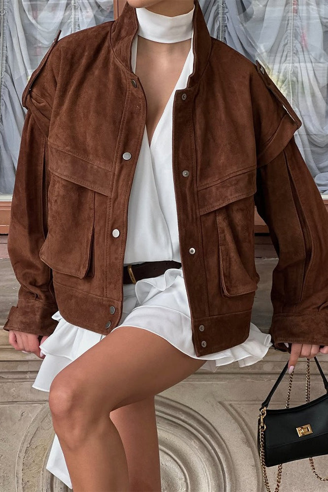 Wide Shoulder Suede Pocket Jacket
