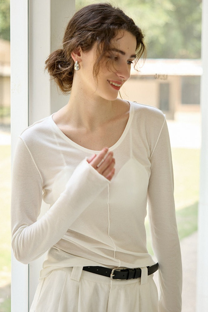 Tencel Wool Blend Round Neck Knit Top