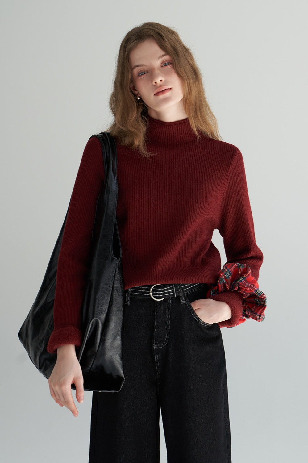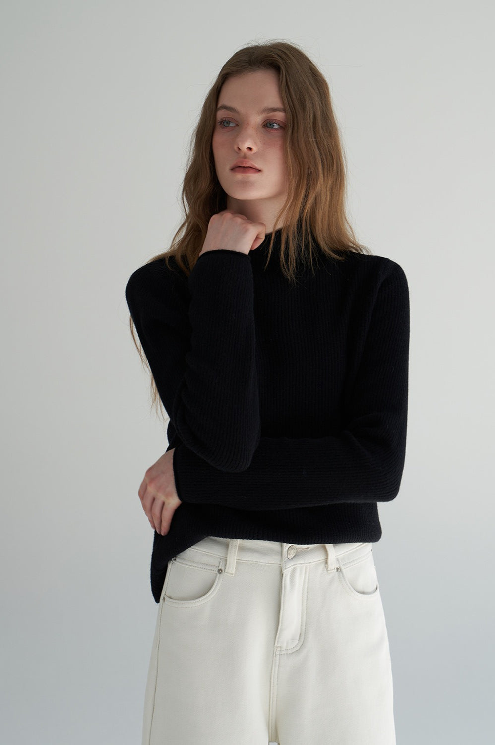 Thermal Mock Neck Solid Knit Top