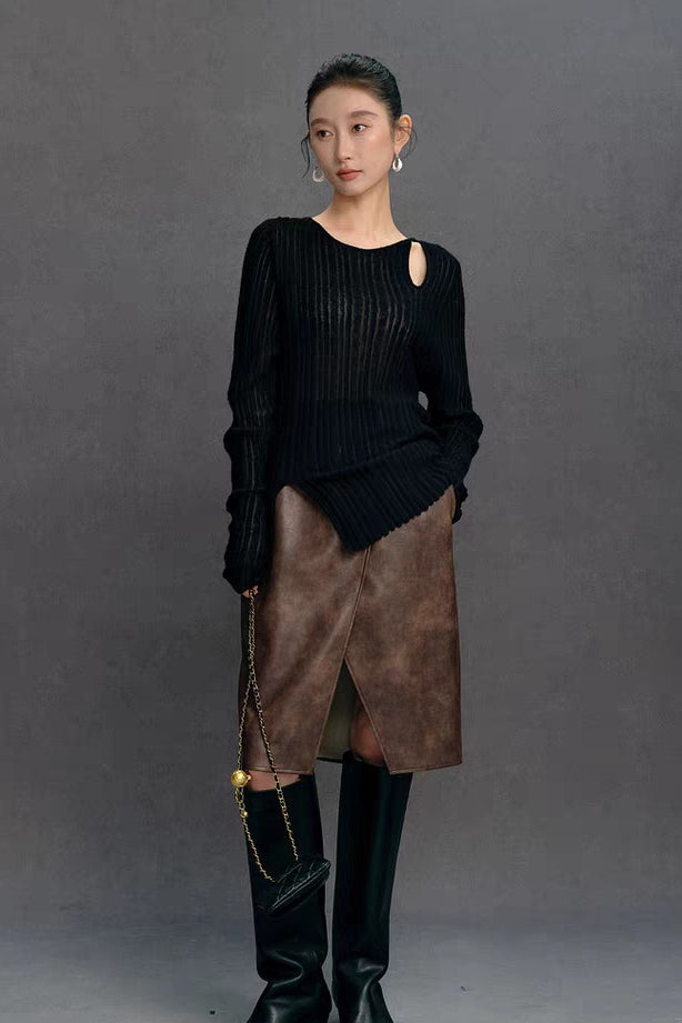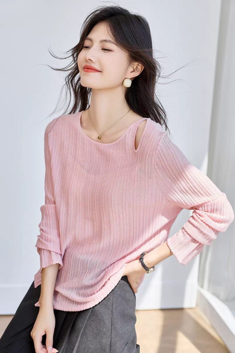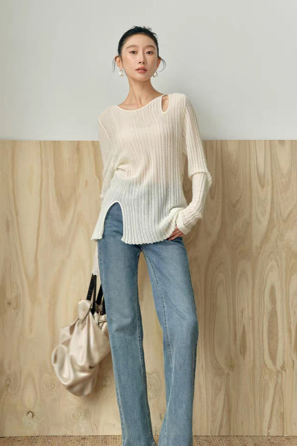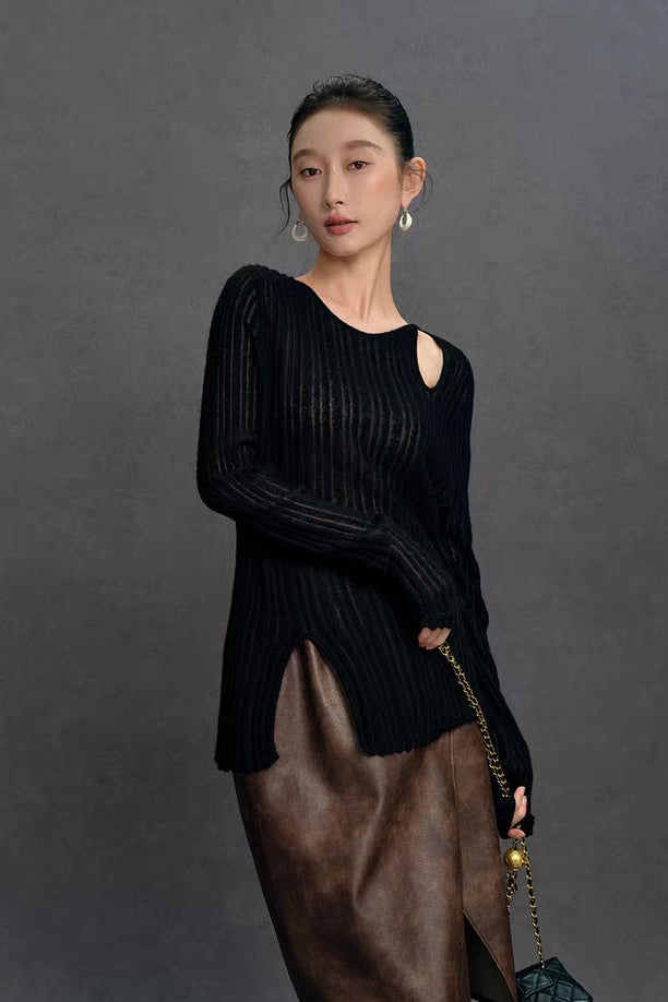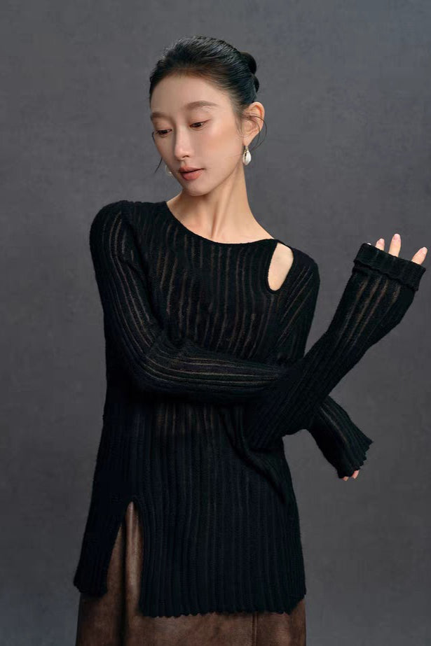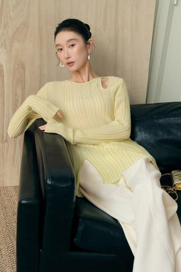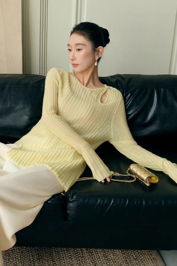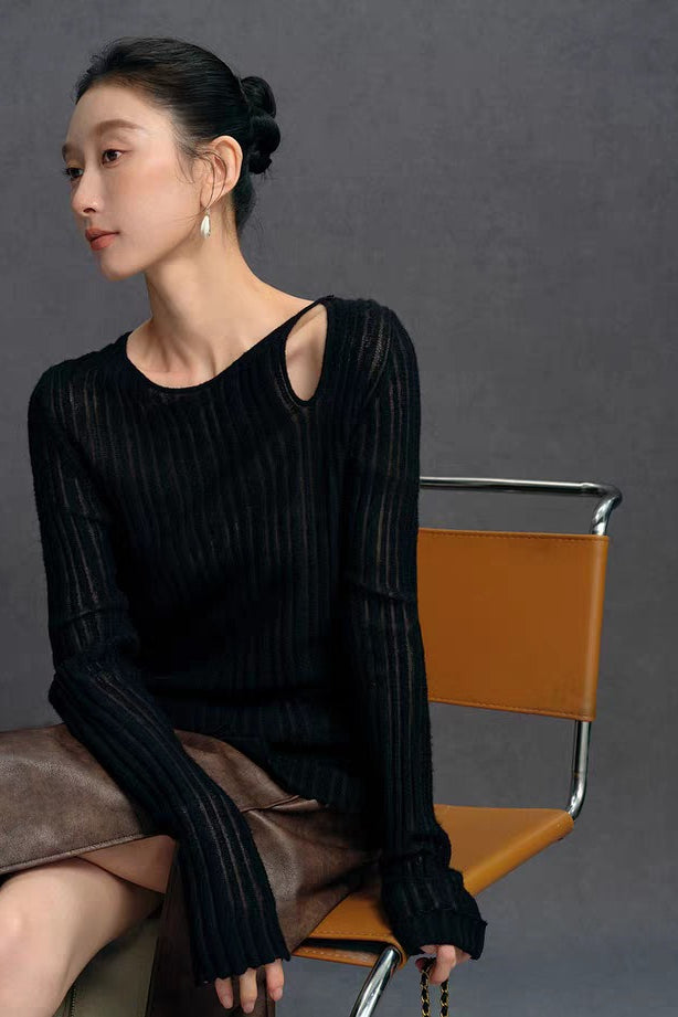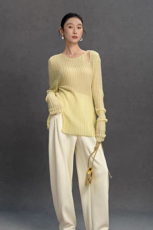 Yaohua Xiyan French Elegant Wool Openwork Ribbed Knit Top