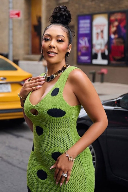 Knit Sleeveless Bodycon Polka Dot Fringe Maxi Dress