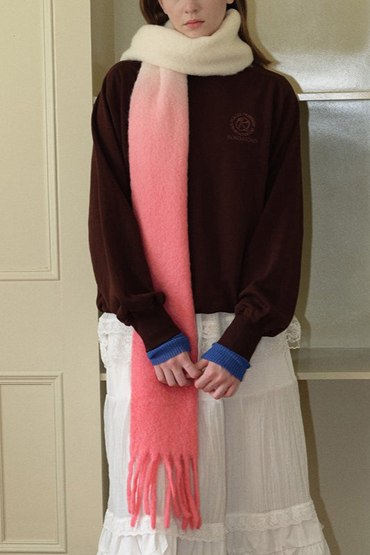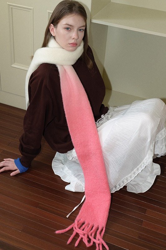 40% Wool Blend Contrast Color Tie-Dye Gradient Scarf
