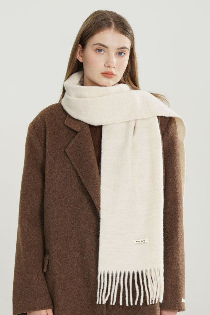 Solid Woven Fringe Wool Blend Scarf