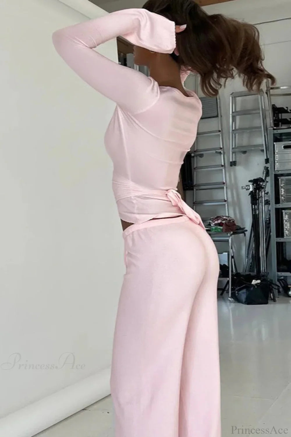 Y2K Sexy V-Neck Fitted Top Casual Pants Two Piece Set