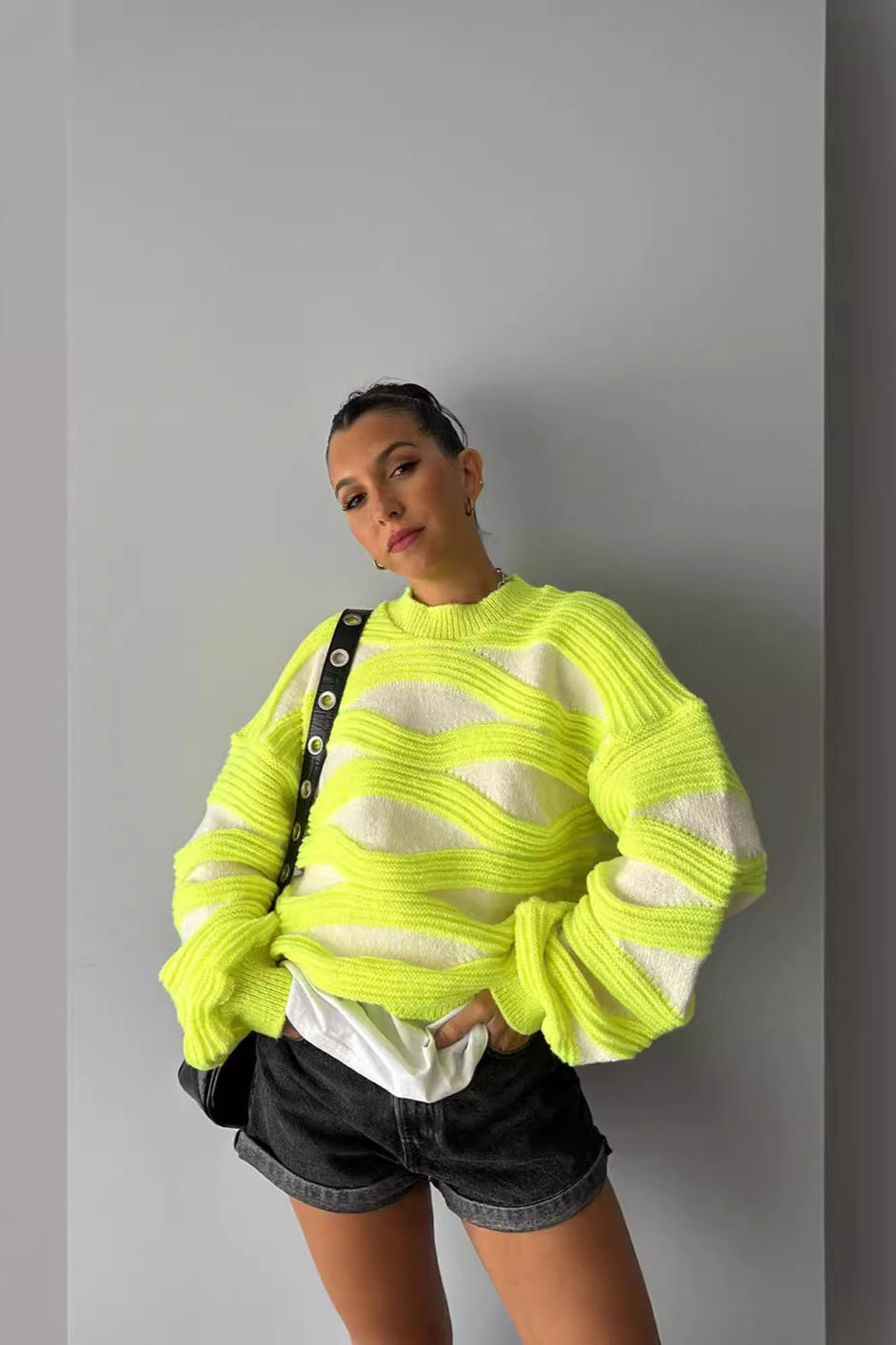 Knit Black White Stripe Round Neck Loose Sweater