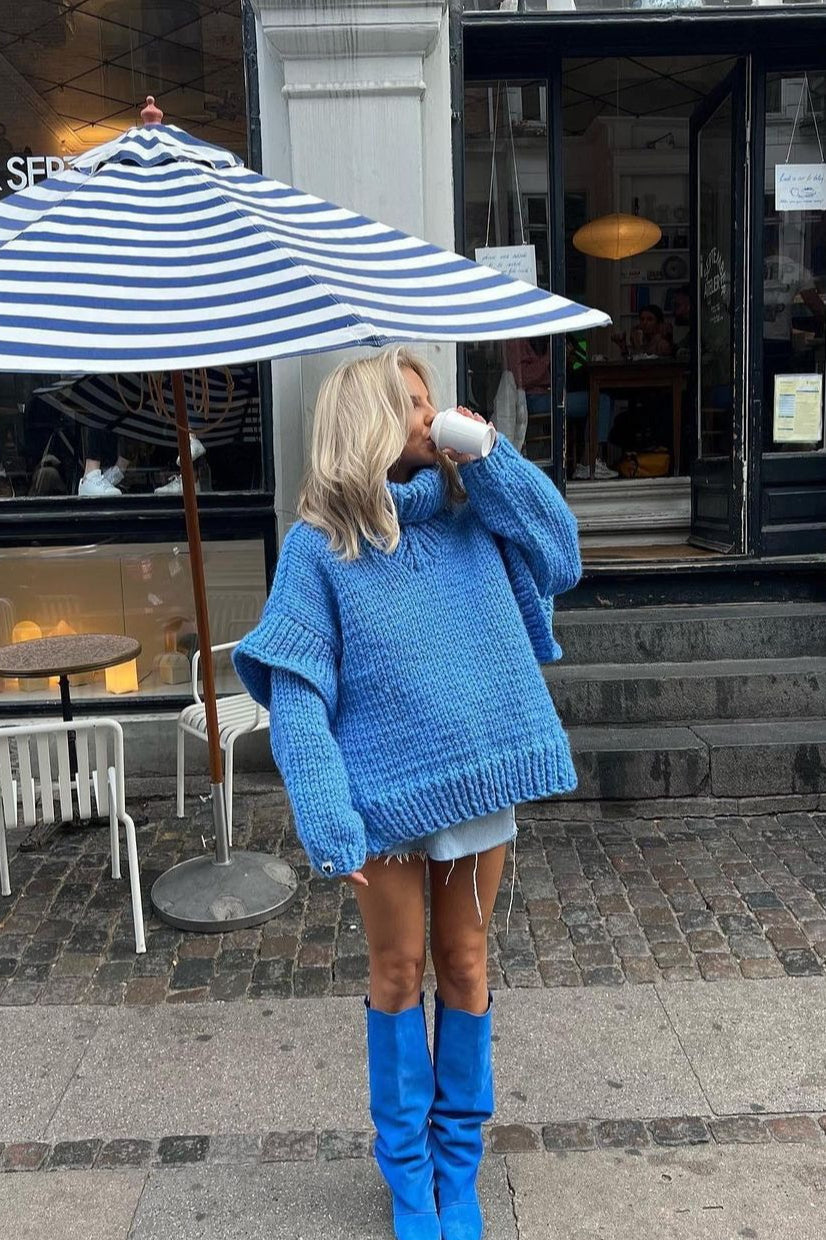 Solid Patchwork Chunky Fluffy Turtleneck Sweater