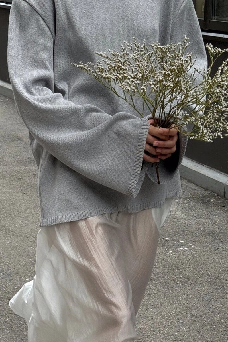 Cotton Loose Fit Off-Shoulder Knit Sweater