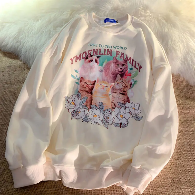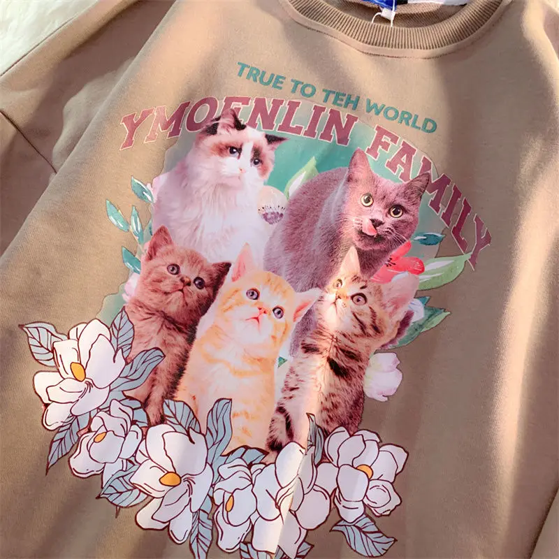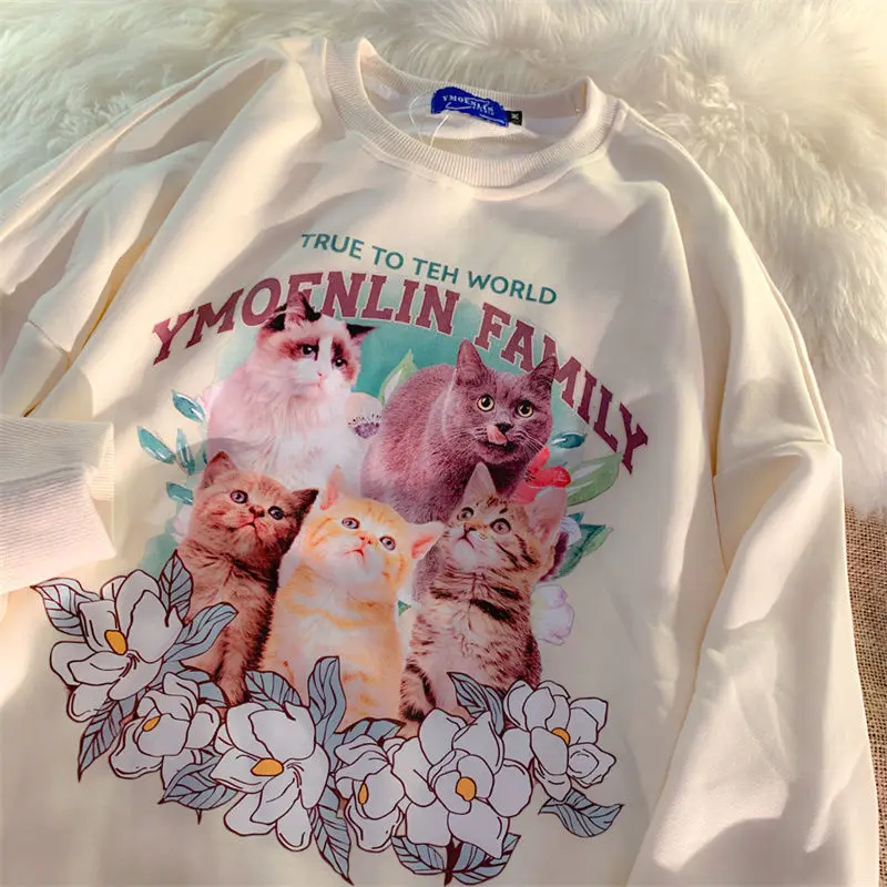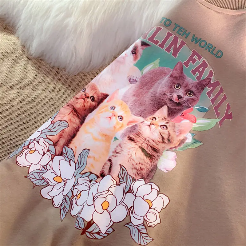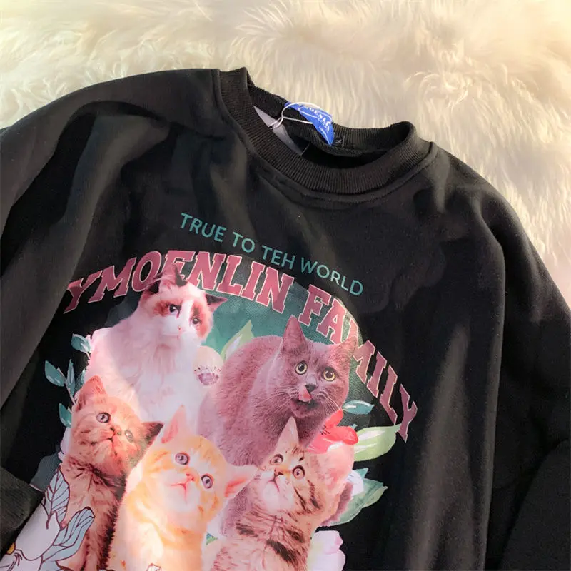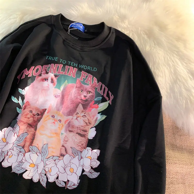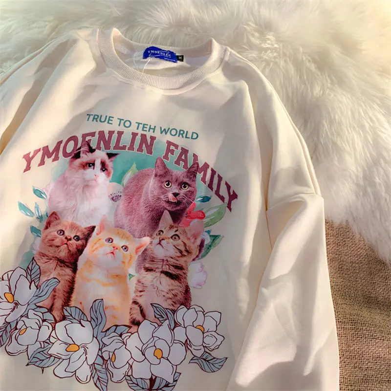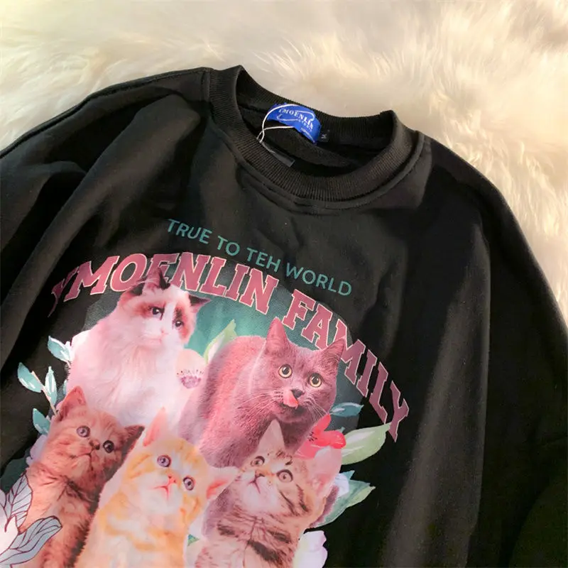 Sweet Cute Cat Print Crewneck Hoody Pullover