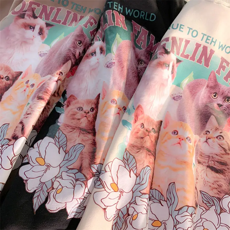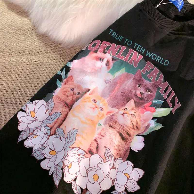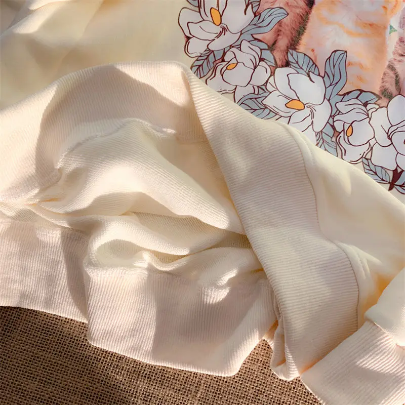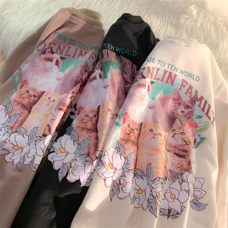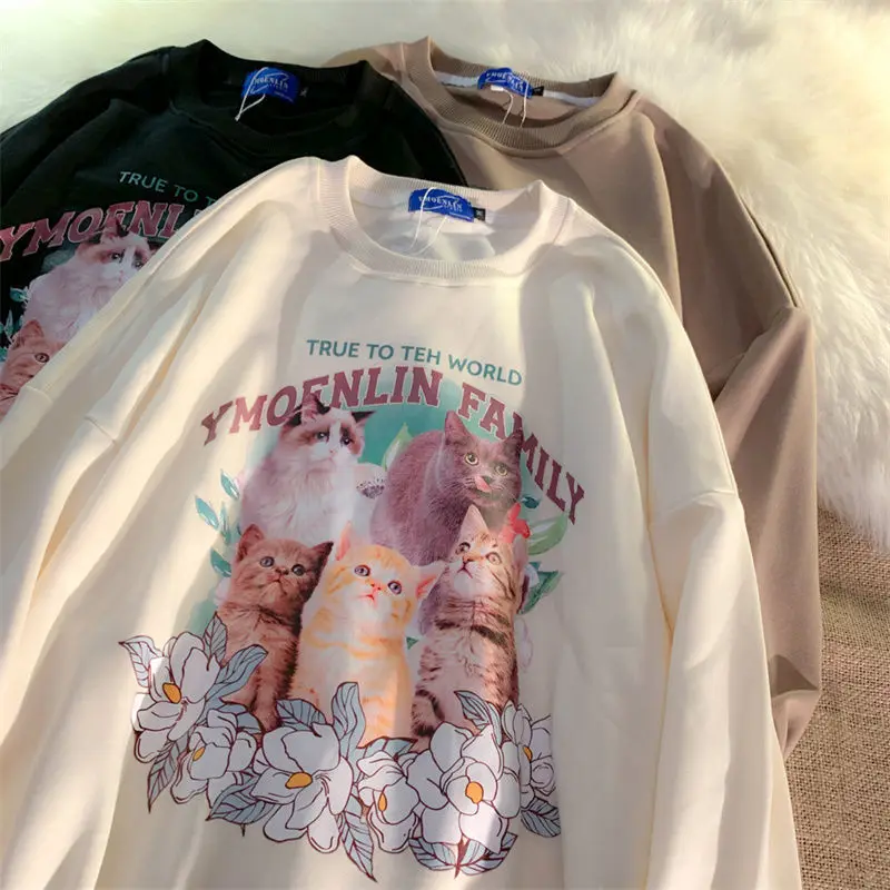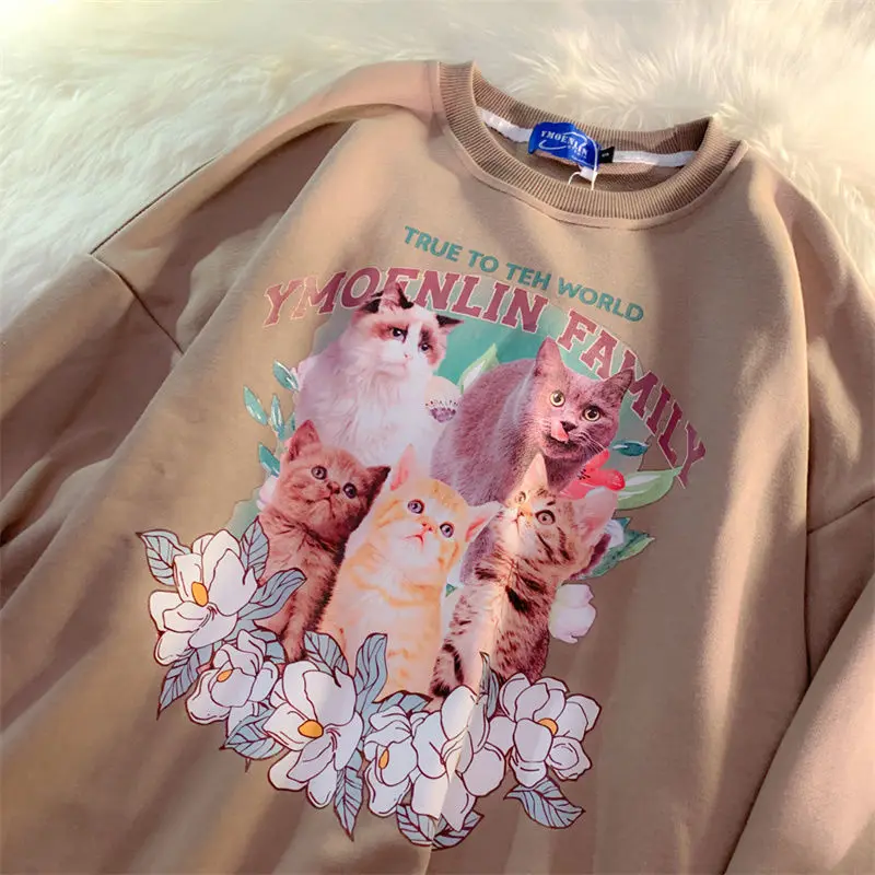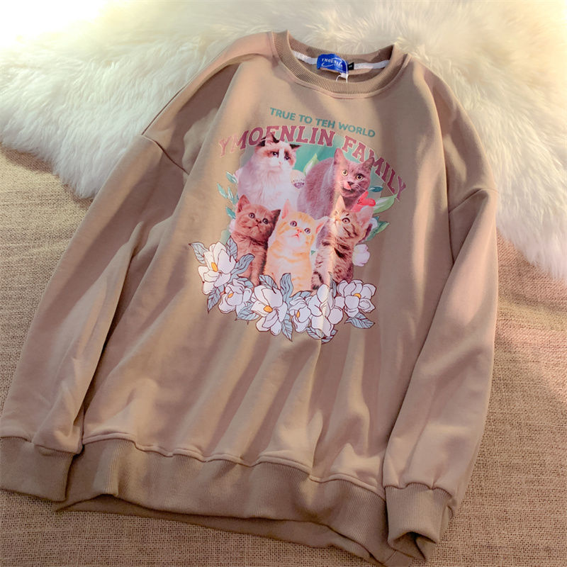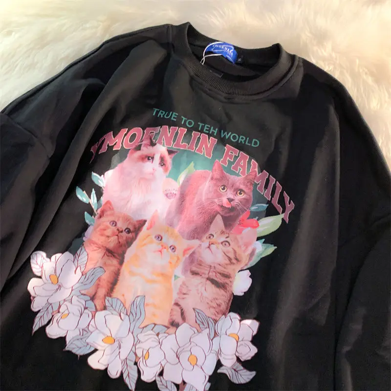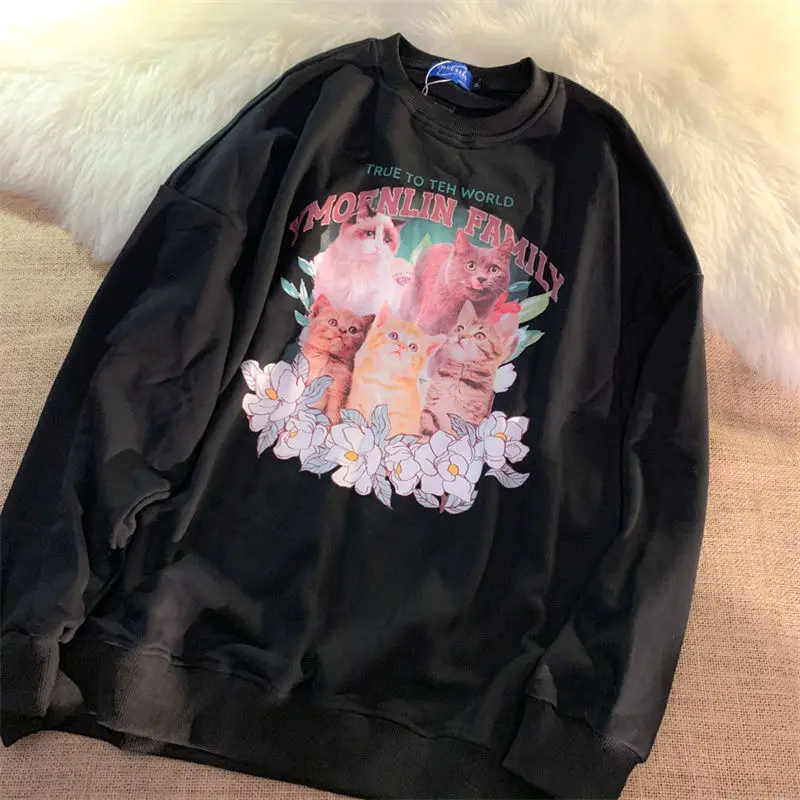 Sweet Cute Cat Print Crewneck Hoody Pullover
