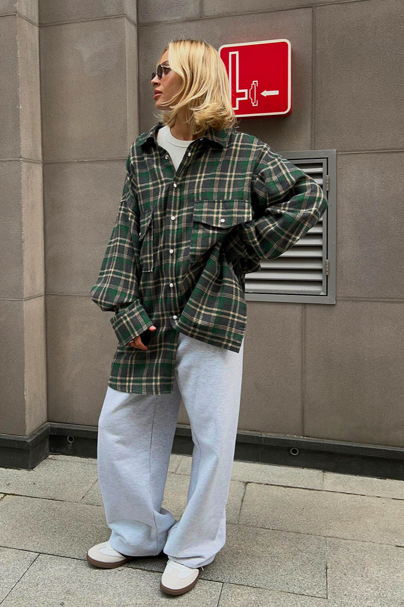 Plaid Striped Mid-Length Blouse