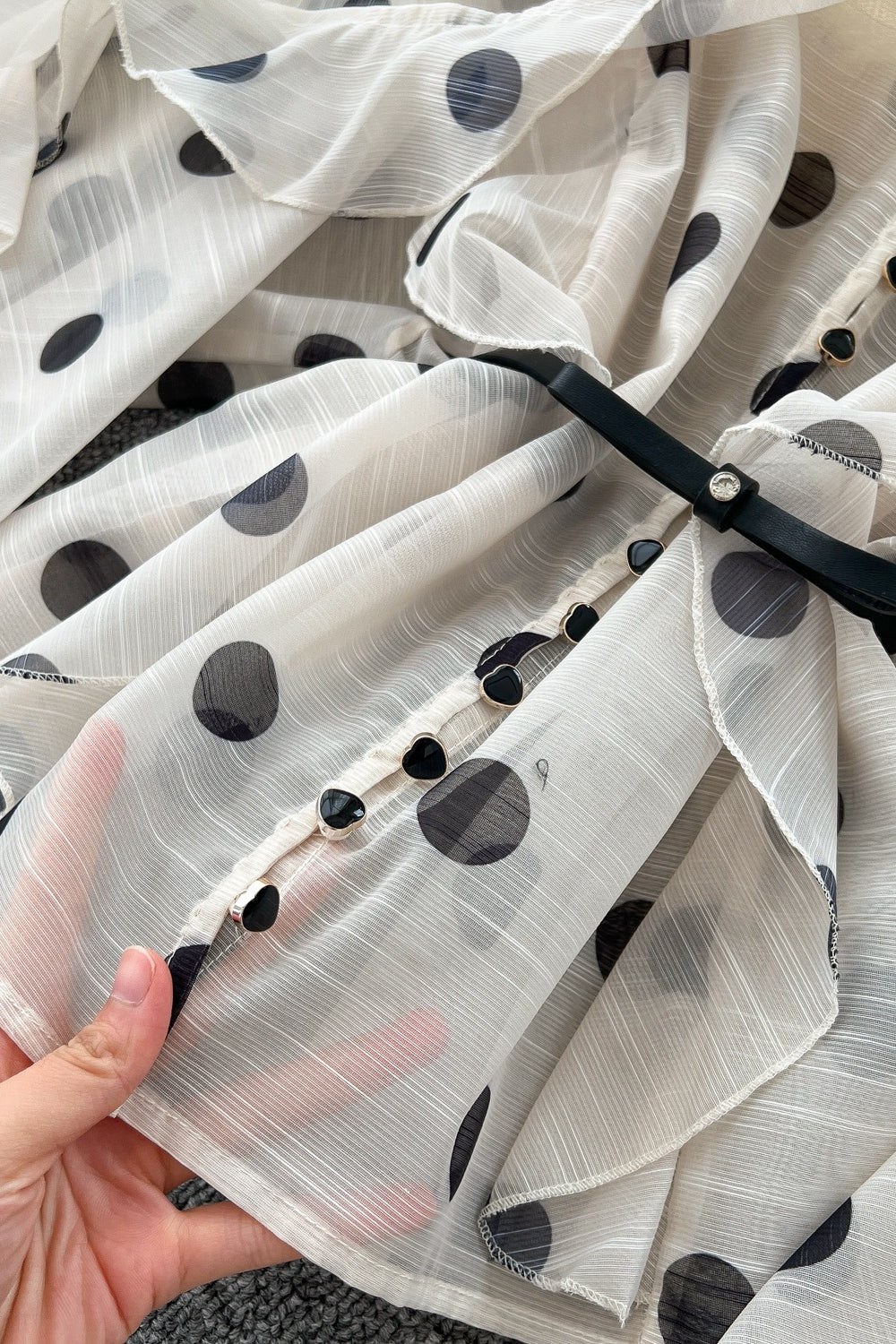 Polka Dot Blouse Mermaid Skirt Two Pieces Set