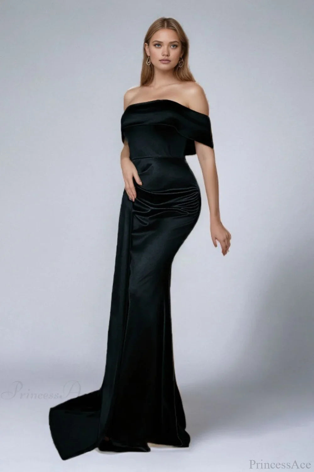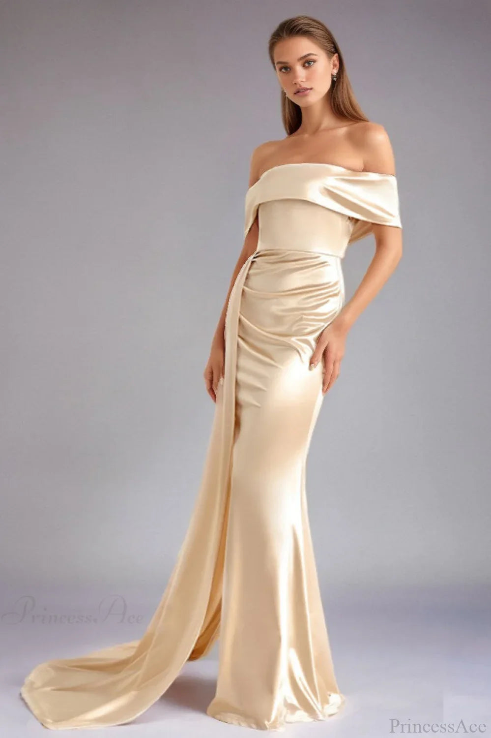 Solid Satin Off-the-Shoulder High Waist Mermaid Evening Dress
